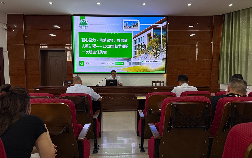 为全面提升学校育人水平,扎实推进新学期学生管理工作,我校于8月20日下午召开了2025年秋学期第一次班主任例会。本次会议以“凝心聚力,筑梦农牧,共启育人新征程”为主题,旨在总结过往经验,明确新学期工作方向,强化班主任队伍建设,为学生成长成才筑牢坚实基础。