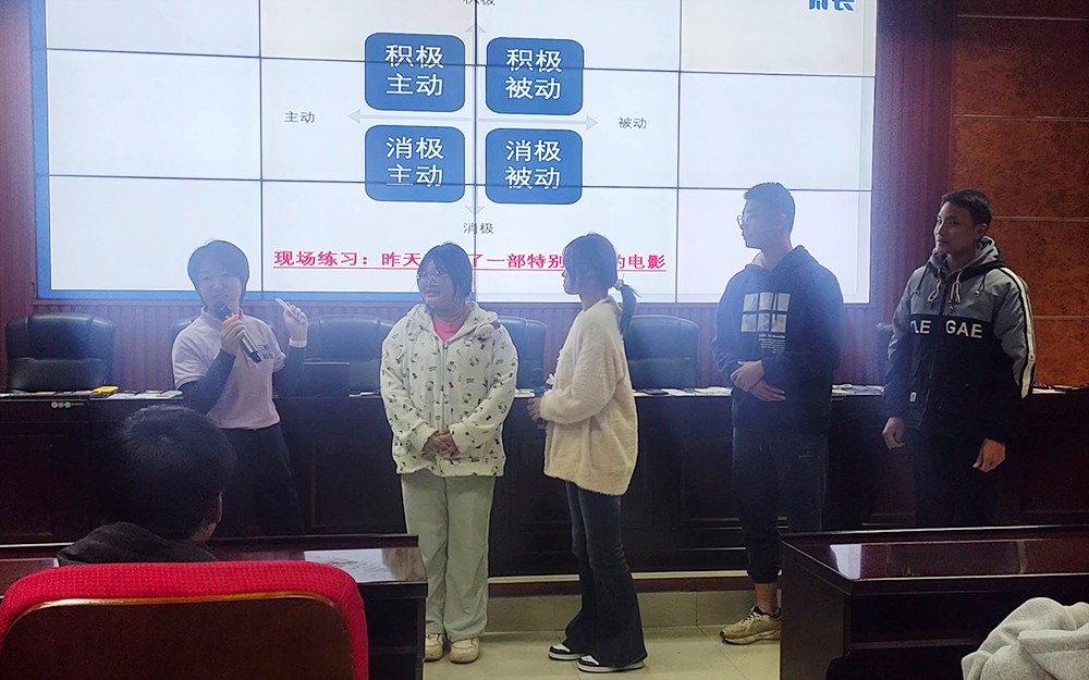 最令人印象深刻的是“积极+主动”四象限现场练习。通过创设真实校园情景,学生亲身体验了“积极主动沟通”、“积极被动沟通”、“消极主动沟通”和“消极被动沟通”四种模式带来的不同结果。在角色扮演与互动中,大家深切感受到主动、积极的态度如何影响沟通效果,从而更愿意在日常中尝试以开放心态与人交流。