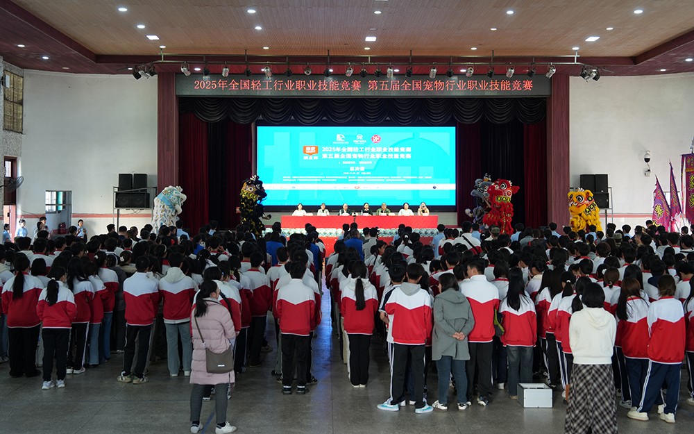11月21日下午,学校大礼堂锣鼓铿锵、雄狮跃动、气氛热烈。2025年全国轻工行业职业技能竞赛第五届全国宠物行业职业技能竞赛总决赛开幕式在此隆重举行。来自全国各省区市的14支参赛队伍、50余名选手齐聚一堂,将在为期2天的赛事中展开宠物训导师和宠物美容师两个项目的巅峰对决。