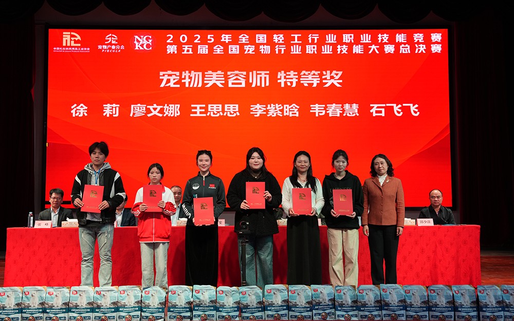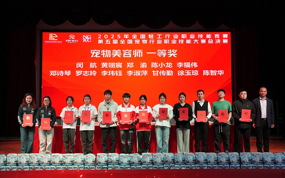 11月22日,由中国轻工业联合会、中国财贸轻纺烟草工会全国委员会、中国礼仪休闲用品工业协会主办,广西现代畜牧业职业教育集团、我校承办的2025年全国轻工行业职业技能竞赛第五届全国宠物行业职业技能竞赛总决赛圆满落幕。本次竞赛历时六个月,在全国多地举办了12场预选赛后确定近50名选手入围总决赛。总决赛从理论与技能两个方面进行综合评定,围绕“宠物驯导师”和“宠物美容师”两大职业赛项展开激烈角逐,最终评选出特等奖9名、一等奖16名、二等奖21名,并颁发优秀指导老师、优秀组织奖等多个奖项。我校荣获优秀组织奖、特等奖2项、一等奖4项、二等奖4项的好成绩。特等奖选手将获授“全国轻工技术能手”荣誉称号,一等奖选手将获授“全国宠物行业技术能手”荣誉称号。