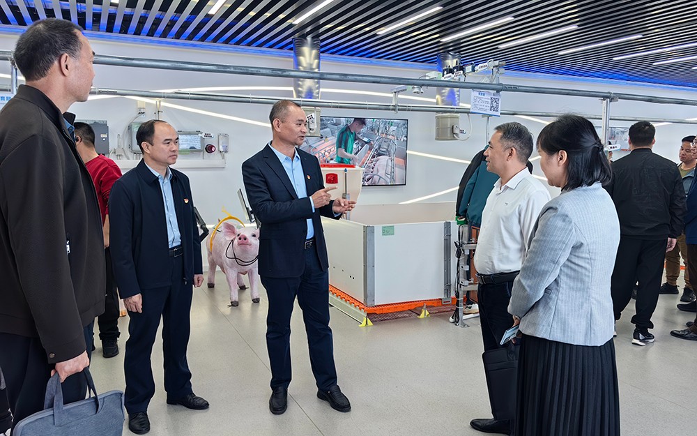 在学校党委书记蒋漓生等领导陪同下,交流团实地参观了智慧猪场实训中心,近距离体验数智技术赋能实训教学的创新实践;从 AI 智能养殖监测系统到数字化实训模拟平台,交流团成员对学校将前沿技术融入农牧类专业教学的举措频频点赞,详细询问了实训课程设计、设备运维管理等具体问题。随后,交流团移步校史馆,通过珍贵的历史资料、办学成果展示,全面了解学校的发展历程、办学特色及专业建设脉络,对学校深耕农牧职教领域、培育技术技能人才的坚守与成效给予高度评价。
