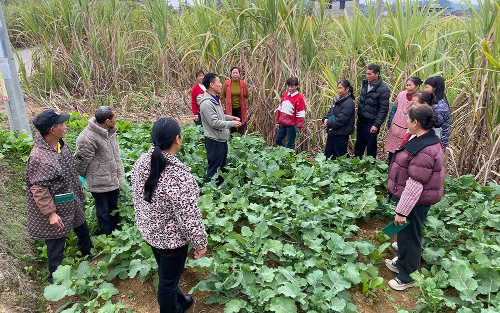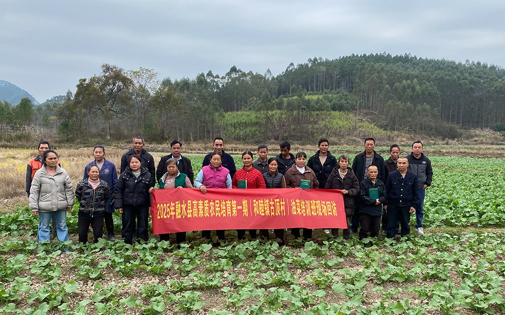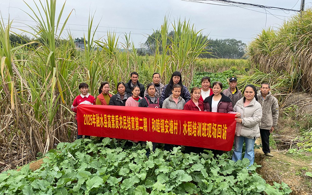 12月29日,学校联合融水县农业农村局开展高素质农民培育项目专项回访,邀请龙站长与高级农艺师廖老师深入田间地头,为2025年融水县第一期油菜培训班、第二期水稻培训班学员送上“点对点”技术指导,实地检验培训成效,推动课堂所学转化为田间生产力。