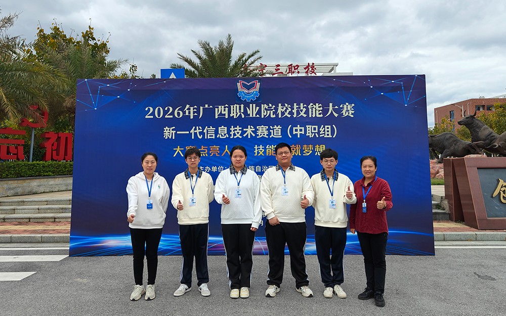 为锤炼专业技能,培养学生综合实践能力,学校组建两支参赛团队,积极备赛并征战3月9—10日在南宁市第六职业技术学校和南宁市第三职业技术学校同时开赛的2026年广西职业院校技能大赛中职组新一代信息技术赛道。本次大赛紧扣信息技术行业一线岗位需求,以技能创新与实际问题解决为核心考核方向,为中职学子搭建了切磋技艺、展示风采的优质平台。学校团队以饱满热情投入比赛,全力展现中职生的专业素养与职业风采。