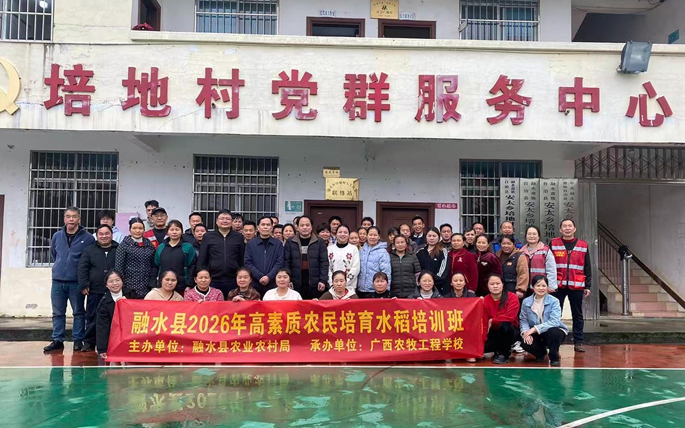 本次培训由融水县农业农村局主办、学校承办,是落实2026年中央农业转移支付资金广西高素质农民培育项目的重要举措。培训班紧扣自治区“粮油和重要农产品生产经营主体提升工程”要求,围绕培地村水稻产业,重点讲授优质稻增密增穗高产栽培技术、病虫害绿色防控、科学配方施肥等关键技术,并推广稻田养鱼、水稻营销与短视频制作等增收课程。培训采取“理论授课+田间实操+跟踪服务”相结合的方式,确保学员听得懂、学得会、用得上。