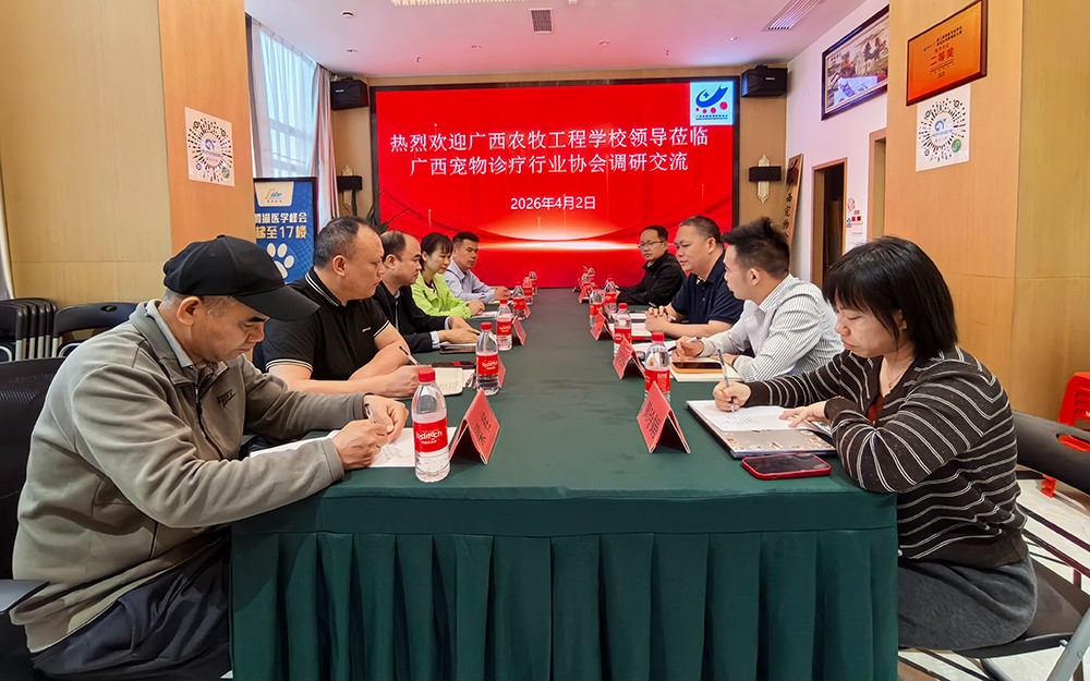 4月2日,学校党委副书记、校长邱少清等一行六人,赴广西宠物诊疗行业协会开展专项调研。双方围绕“校、企、协”协同发展、人才培养、资源整合与技术创新等议题进行了深入交流。