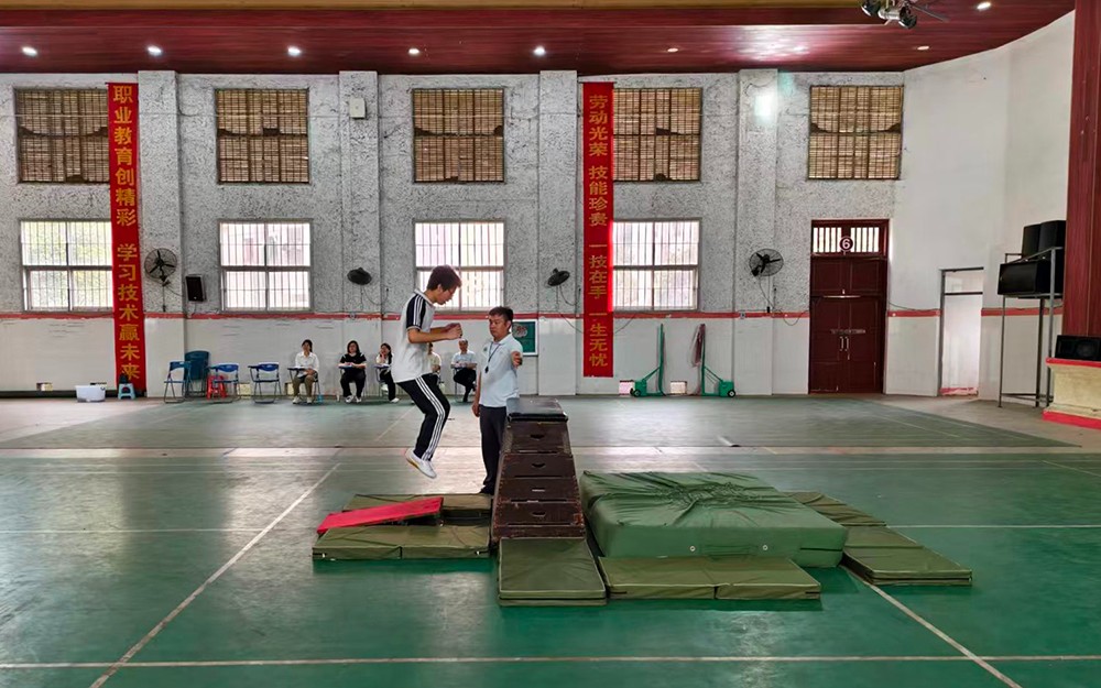 课堂上,授课教师紧扣中职学生身心特点,精准把握跳马分腿腾跃的动作要领,通过示范讲解、分解练习、分组指导、纠错提升、AI评分的教学流程,层层递进突破重难点。从助跑、踏跳、腾空分腿到推手落地,教师耐心示范标准动作,细致纠正学生姿态,着重强化安全意识与动作规范性。课堂氛围活跃有序,学生们精神饱满、积极参与,在教师的科学指导下大胆尝试、反复练习,逐步掌握技术动作,成功完成腾跃动作,现场掌声不断。整堂课既注重技能传授,又融入体能训练与意志品质培养,充分体现了中职体育课程“以体育人、以技促能”的教学理念,展现出教师扎实的教学功底与良好的课堂驾驭能力。