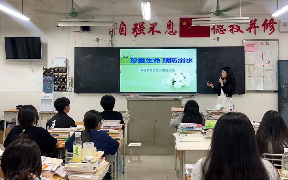 班会伊始,班主任首先通过一组触目惊心的溺水事故数据视频,让同学们深刻认识到溺水已成为危及青少年生命安全的“头号杀手”,敲响了安全警钟。随后,各同学轮流上台结合图片和视频,生动展示了野外池塘、水库、河流等隐蔽风险水域的特点,告诫大家务必远离“野泳”。台上讲解的同学准备充分、表达流畅,台下同学认真倾听,积极参与问答,班会气氛热烈而有序。