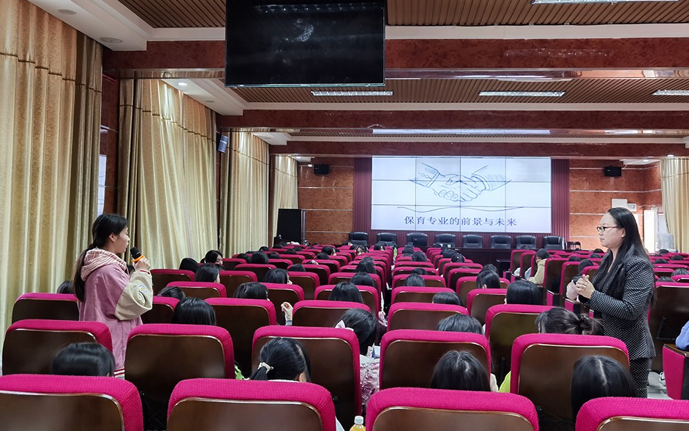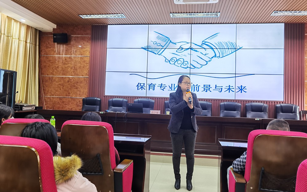 为了让我校幼儿保育专业的学生能更加了解所学专业,做好职业生涯规划,11月30日下午,特邀柳州市胜利幼儿园园长肖宁敏在校学术报告厅给幼儿保育专业的学生进行职业生涯规划专题讲座。讲座的主题是《保育专业的前景与未来》,20级和21级幼儿保育专业的学生参加了讲座。本次讲座由旅游教学团队主任谢云花主持。