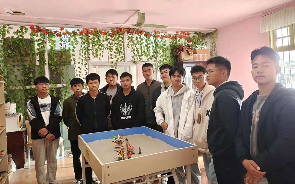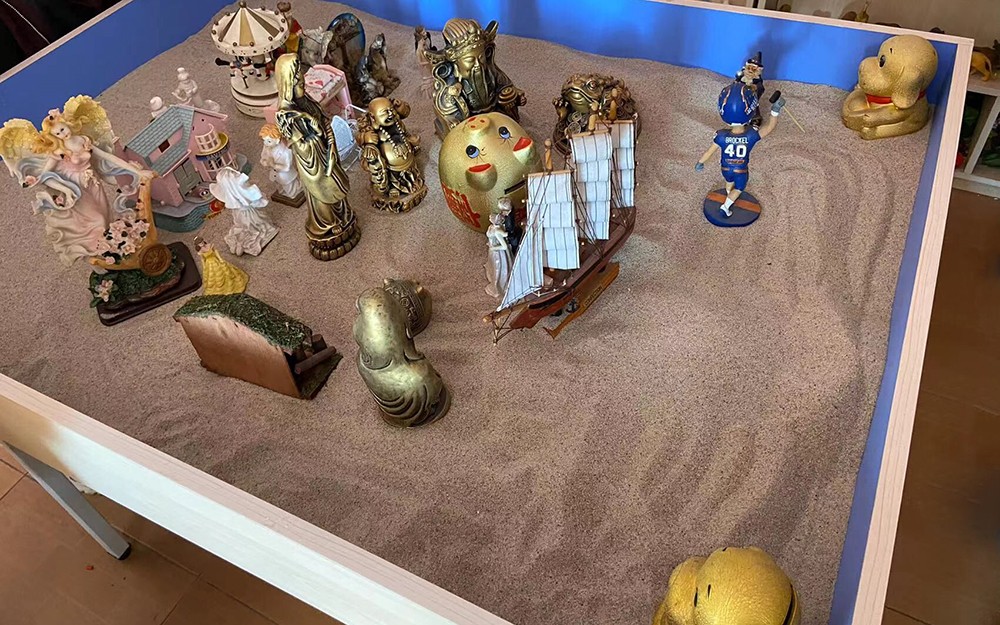 一个箱子,一团细沙,一排排陈列的模型,构成心理咨询的箱庭游戏。为了让大家了解沙盘、了解心理咨询,也为了促进班级团体之间的了解、互动合作,心理咨询室开展了团体沙盘辅导系列活动。此次活动由心理咨询室负责人林贝茵老师组织,班级分小组进行、每次10人参加。