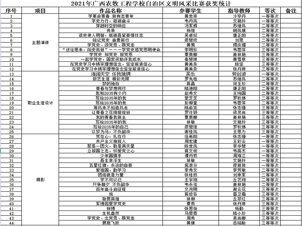 自治区文明风采比赛是根据《桂教办〔2021〕257号自治区教育厅办公室关于开展“少年工匠心向党 青春奋进新时代”教育活动的通知》以及《教职成司函[2021]8号关于在中等职业学校开展“少年工匠心向党+青春奋进新时代”教育活动的通知》等文件精神开展的,在校领导的高度重视下,我校师生参赛热情高涨。