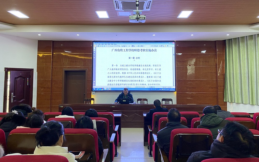 为进一步加强教师队伍师德师风建设,树立严格自律、爱岗敬业、为人师表的良好教师形象。12月28日下午,我校组织全体教职工在办公楼阶梯教室开展师德师风专题学习活动。