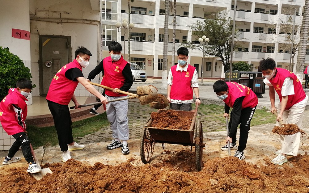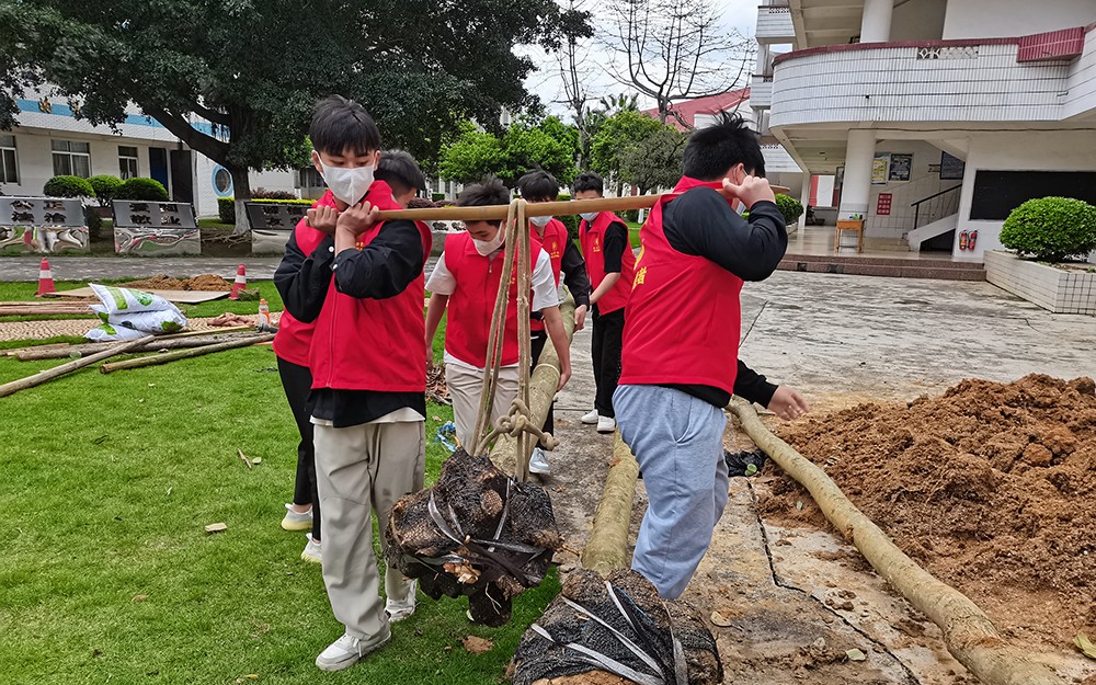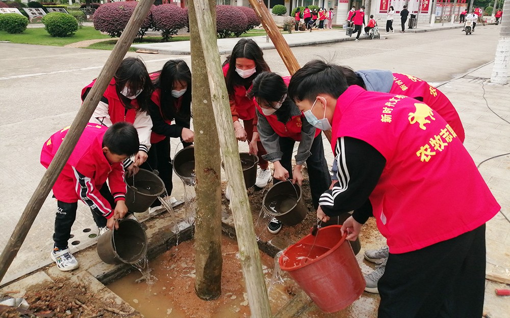 3月28日下午,我校开展“争创雷锋标兵、创建绿色校园”为主题的青少年义务植树活动。在生机勃勃的春天里,我校号召师生开展义务植树劳动,我校共有30名师生通过志愿服务活动“桂志愿”系统报名后来到现场参加活动,大家按照植树组、浇水组、填泥组等组别进行植树,分别在主干道、教学区域绿化草地等位置组织校园植树,经过全体师生2个多小时的团结协作顺利的完成了植树任务,为绿色校园增添了光彩。
