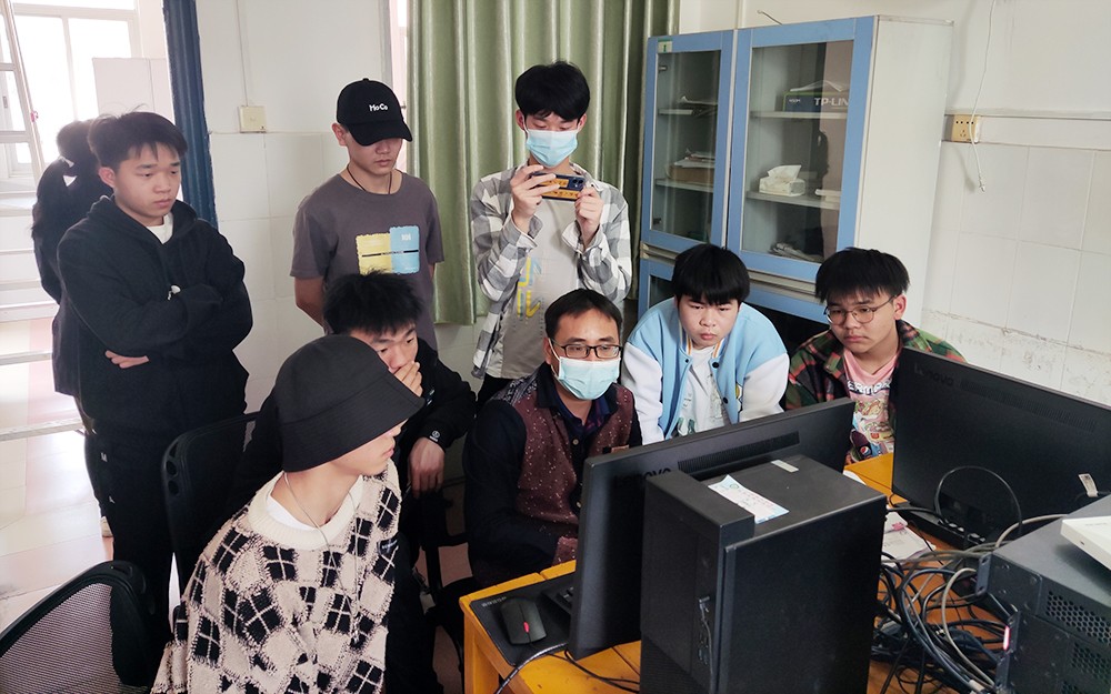 随着2022年广西职业院校技能大赛中职组《网络搭建与应用》比赛日益临近,我校计算机网络搭建实训室里的气氛愈加紧张,参赛队员专心致志训练,指导老师全程督训。我校今年共有3名分别来自2020级、2021级计算机网络技术专业的学生参加比赛。