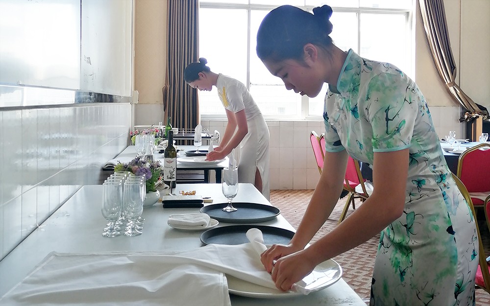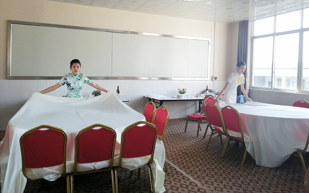 本次酒店服务赛项为团体赛,竞赛内容为客房中式铺床与开夜床、前厅接待服务、宴会摆台与席间服务的操作以及口试,口试内容为专业理论与英文问答。为引导区内中职院校关注行业对酒店人才培养的新需求,并向全国职业院校技能大赛看齐,今年的宴会摆台与席间服务的操作增加了拆筷套以及分鲍汁烩饭两个环节,增加了一定的难度。