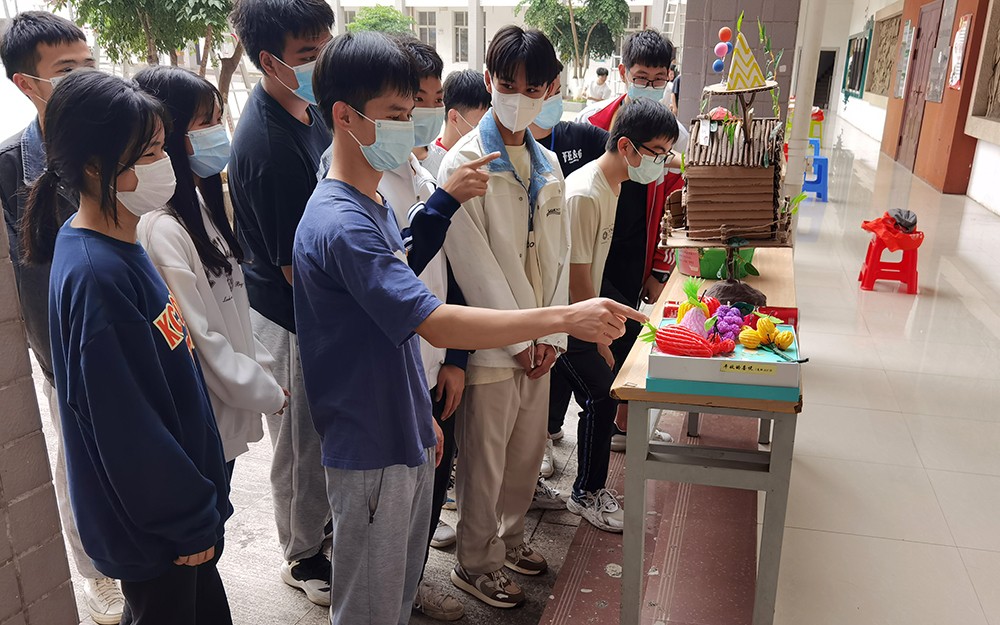 同学们在观看作品