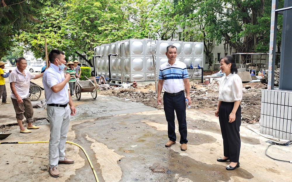 蒋漓生校长、马翠芳副校长带队检查校园施工场地