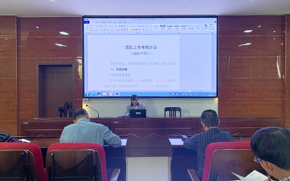 随后,马翠芳副校长就《团队工作考核办法(2023年修订)》、《广西农牧工程学校教师技能竞赛管理办法(讨论稿)》文件进行说明。