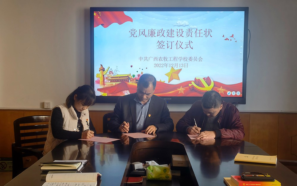 最后,学校党委书记和学校分管副校长、科室负责人签订了党风廉政建设责任状。