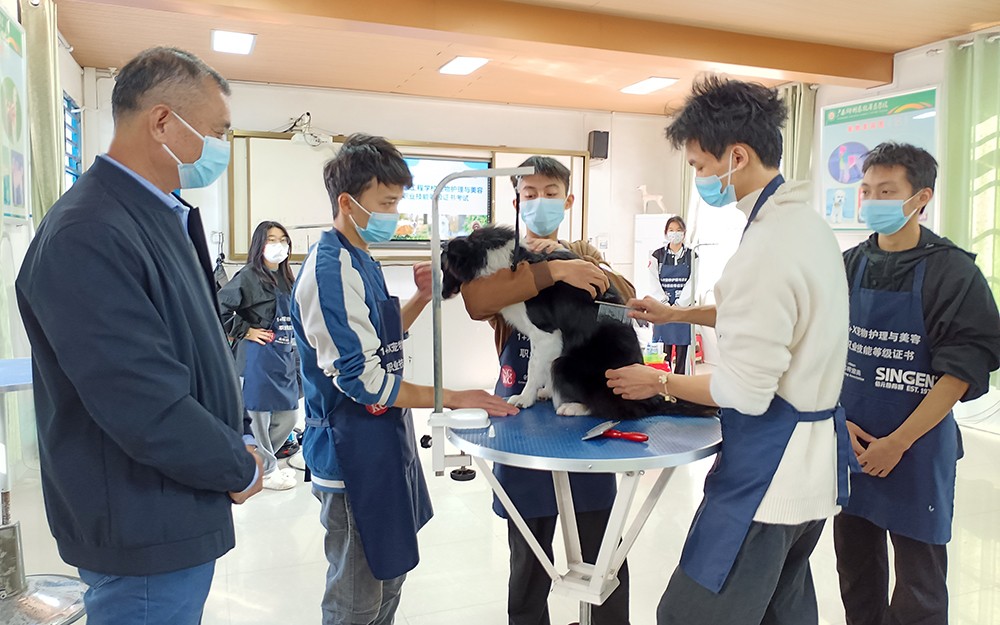 为顺利完成此次考核,宠物养护与经营教学团队的全体教师,团结一心,凝心聚力,全员参与,克服了时间紧、任务重等困难,强化学生训练,精心安排考前各项工作。最终,在学校领导的关心支持下,经过宠护专业全体师生的辛勤付出,共同努力,此次考核工作获得圆满成功。我们将以证书认证考核为契机,进一步深化人才培养方案改革,构建基于“赛课赛证融通的课程体系”,进一步优化课程设置和教学内容,为社会培养更多优秀的宠物养护与经营专业复合型技术技能人才。