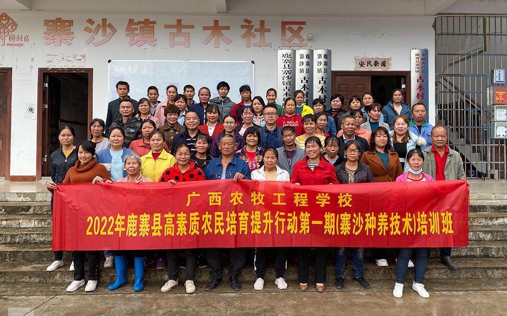 为加快构建高素质农民队伍,为乡村振兴和农业现代化提供强有力的人才保障和智力支撑,我校于11月23日-12月21日,在鹿寨县寨沙镇古木村委举办2022年鹿寨县高素质农民培育(寨沙种养技术)培训班。来自寨沙镇古木村的50位学员参与了本次培训。
