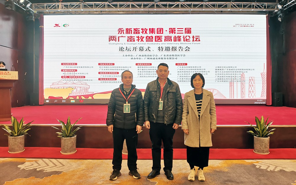 2月24日至26日,以“科技引领畜牧、创新发展行业”为主题的“永新畜牧集团·第三届两广畜牧兽医高峰论坛”在广西南宁举行。本次论坛由广东省畜牧兽医学会和广西畜牧兽医学会主办,来自区内外相关领域的500多位专家、企业管理者、科研人员、院校师生、技术人员等参加了会议。其中,我校陶佑强、甘庆宾、秦荣香3位专业教师参会。