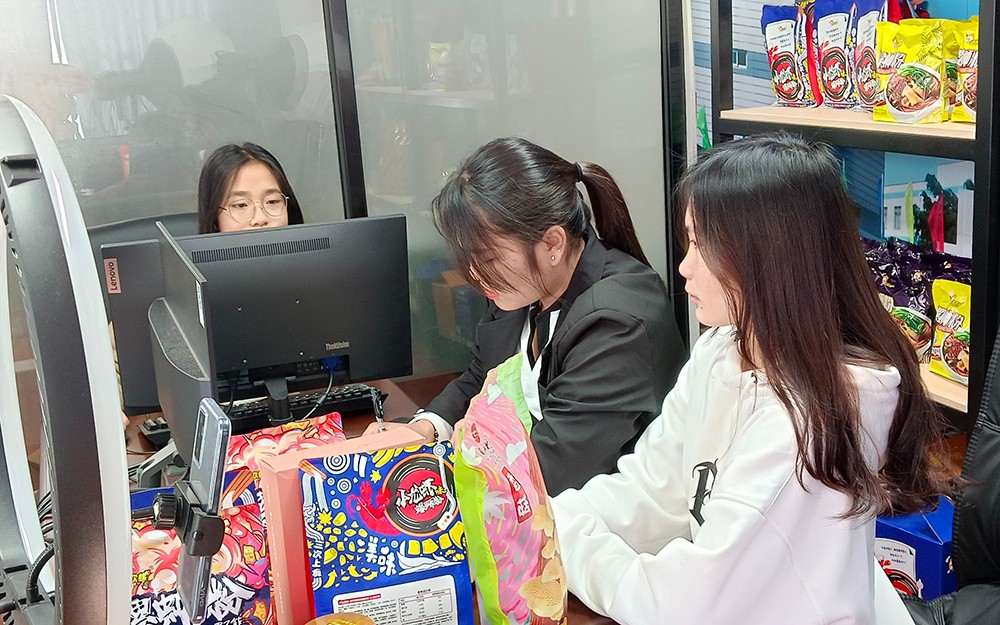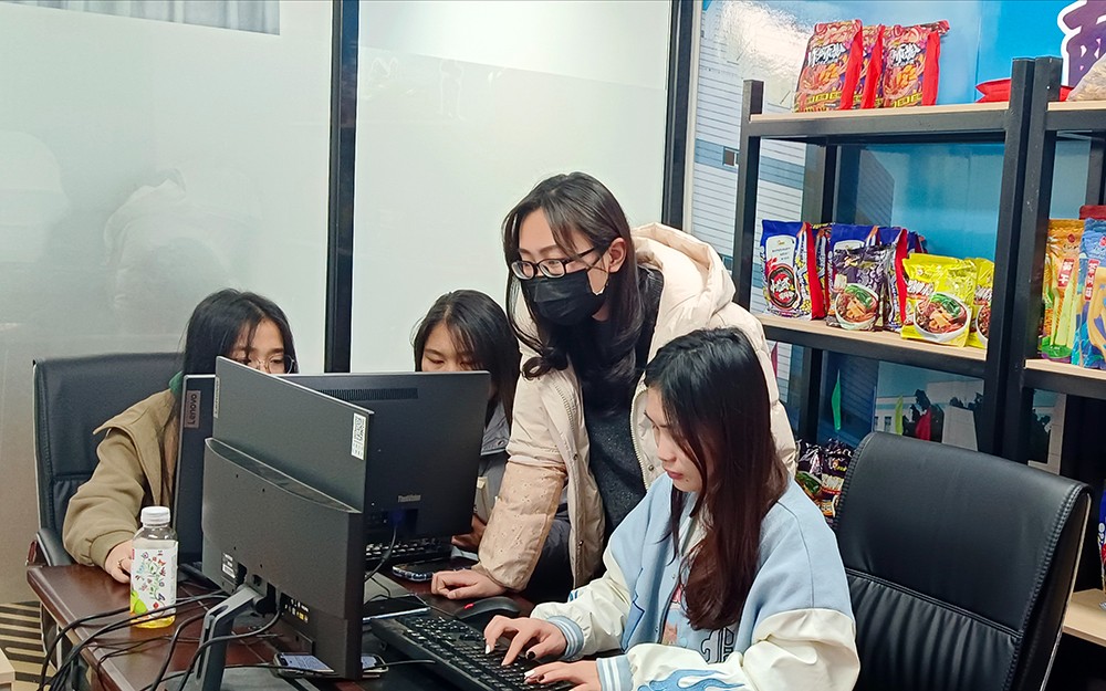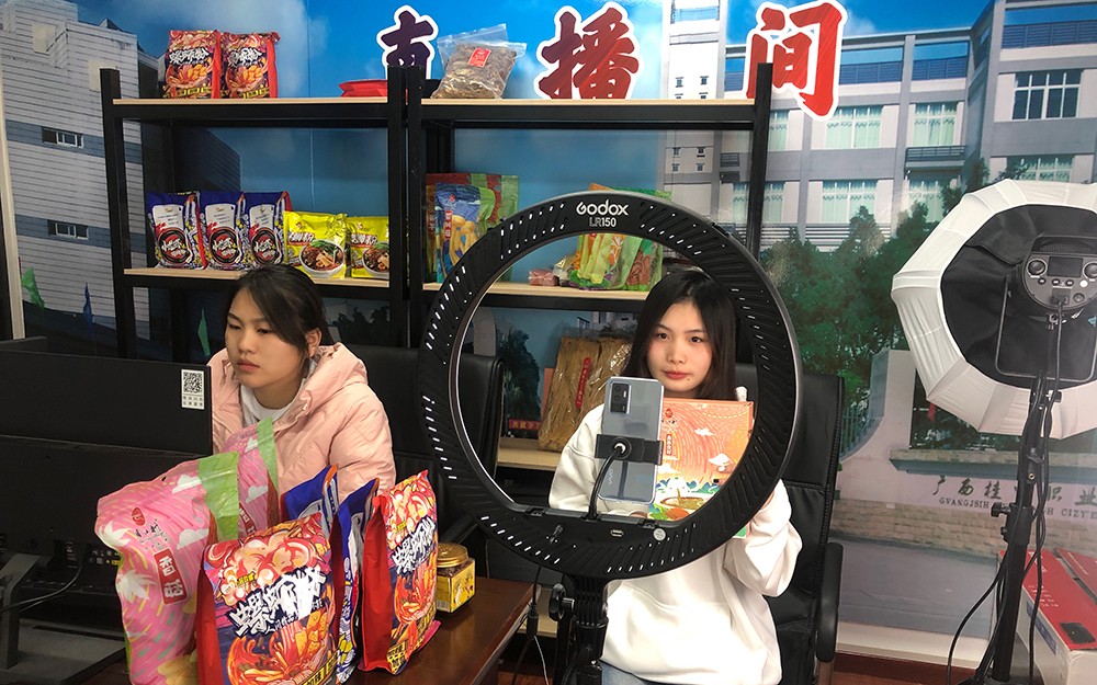 2023年广西职业院校中职组直播电商赛项开赛在即,我校选拔出电商211班韦志梦、韦东媛、覃柳玉三位同学组成参赛队,在机电信息专业部王思力、吕格娟、吕鸿飞三位老师指导下开展赛前集训。
