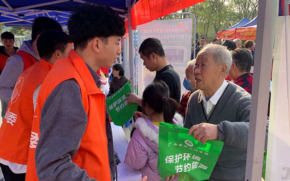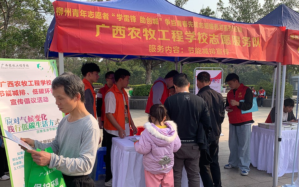 为深入学习贯彻党的二十大精神,认真贯彻落实习近平总书记对深入开展学雷锋活动做出的重要指示精神,3月5日上午,我校团委组织青年志愿者前往雀儿山公园红豆广场参加了团柳州市委组织的第五届“小紫荆”青年工艺志愿文化节,在志愿服务集市中我校为市民群众开展“节能减排、低碳环保”为主题的宣传活动。