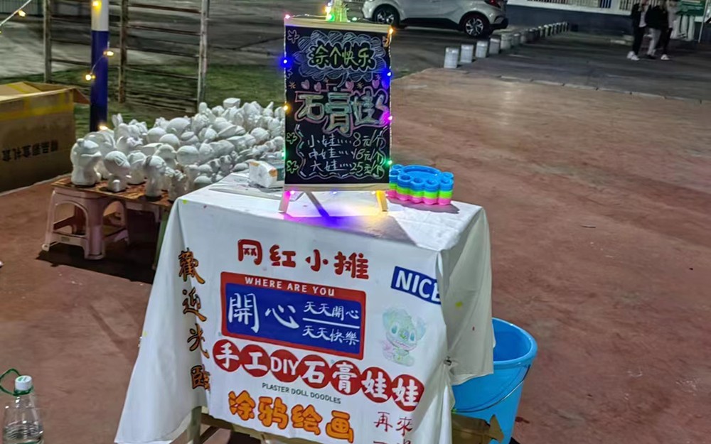 万物可爱,快乐加倍!涂个快乐小店以快乐为口号,立志于让顾客在涂鸦绘色中释放自我,收获快乐!在小店购买石膏娃娃同时还附赠盲盒,让你收获意想不到的惊喜。在现场许多同学表示在给石膏娃娃涂鸦绘画的过程中十分有趣,在感悟绘画的魅力的同时能过放松心情。