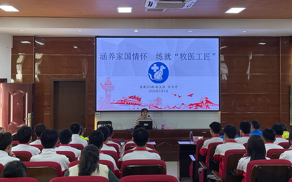 为了能够更好向兄弟学校展示我校德育管理工作,首先我校优秀班主任冷毕丹老师在阶梯教室上了一节《涵养家国情怀、练就牧医工匠》主题班会观摩课,接着双方在二楼视频会议室进行交流座谈,在座谈会上,瞿副校长先用“六个一”来总结我校德育管理工作,接着,双方学校就班主任工作及名班主任工作室建设方面进行了深入交流。