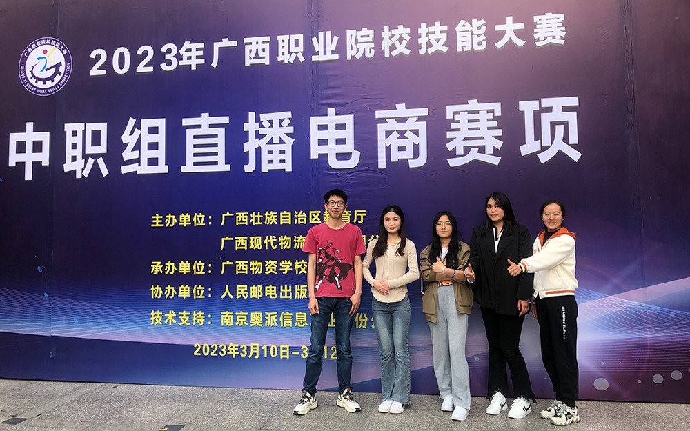 3月10-12日,由自治区教育厅主办的2023年广西职业院校中职组《直播电商》赛项在南宁隆重举行。我校电商211班韦志梦、韦东媛、覃柳玉三位同学参加了比赛。经过直播策划、现场开播、直播后数据复盘3个环节的激烈角逐,我校电商团队以80.16分的总成绩在80所参赛学校中排名第七。