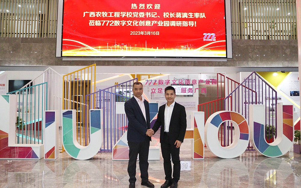 蒋校长与772数字文化产业园发展公司韦燕强总经理握手合影