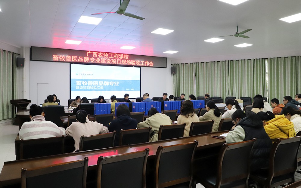 3月29日,自治区教育厅委派广西农业职业教育教学指导委员会专家广西农业职业技术大学校长助理罗英极教授等一行7人到我校开展畜牧兽医品牌专业建设项目现场验收工作。学校校长蒋漓生、副校长马翠芳及项目验收工作组全体成员参加验收工作。