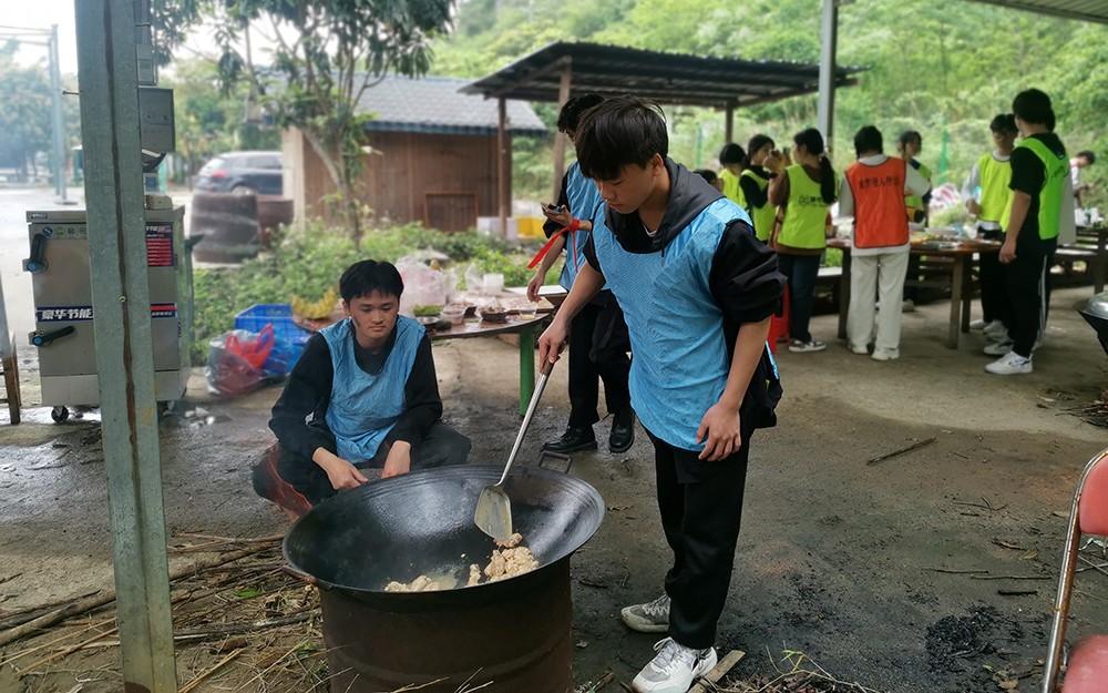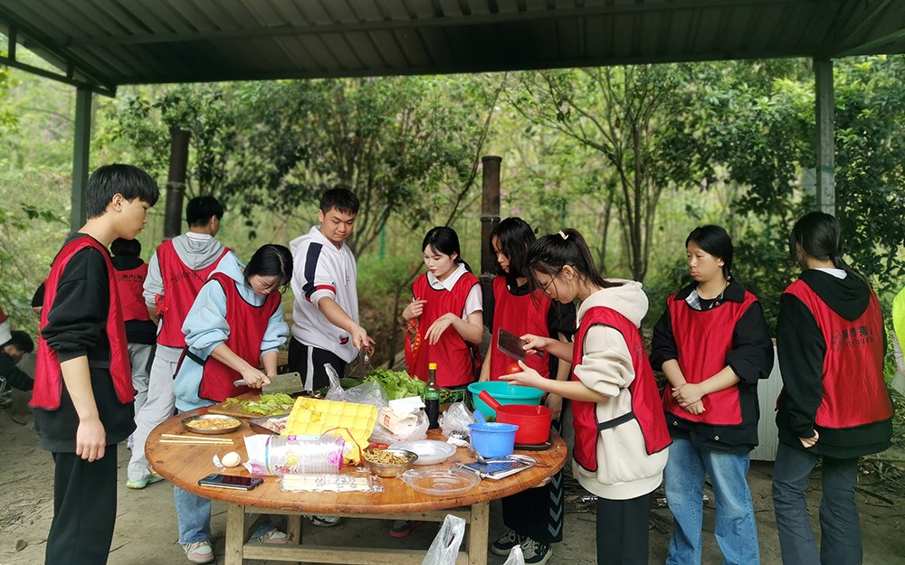 “香菇可以炒肉吗?”“做个凉拌青瓜”“我要炒辣子鸡”……同学们拿着锅碗瓢盆,准备在野炊中大显身手。大家分工协作地忙活开来,有的择菜洗菜切菜,有的负责找柴生火掌厨,配合默契。不一会儿,场地上便升起了缕缕炊烟,紧接着一道道佳肴也陆续出锅。大家品尝着自己的劳动成果,露出了自信的笑容。