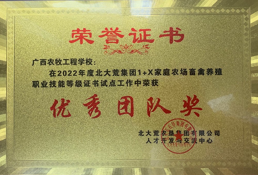 在2022年职业技能等级证书考核中,我校被评为“2022年度北大荒集团1+X家庭农场畜禽养殖职业技能等级证书试点优秀团队”、“2022年1+X证书制度汽车运用与维修、智能新能源汽车职业技能等级证书试点先进院校”,学生考证通过率高达93.7%。