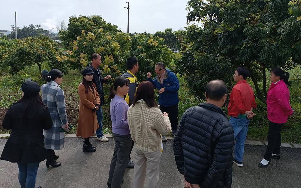 本次回访以现场教学为主,主要以龙眼种植技术与病虫害防治技术进行详细讲解。现在正是开春季节,是修剪树形、施肥、杀虫的季节,老师手把手的教学员们修剪树形,还有比较常见的病害和虫害的防治,需要用什么药、用药的比例和用药的时间都一一跟学员讲解,学员们也纷纷提出在生产中遇到的技术问题,老师都耐心的给大家解答。