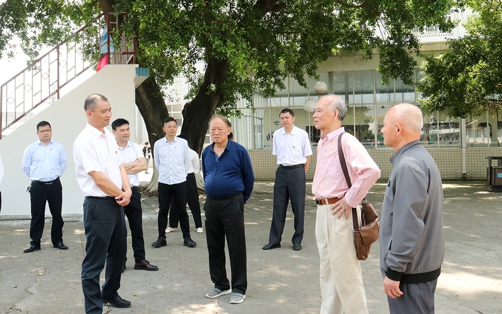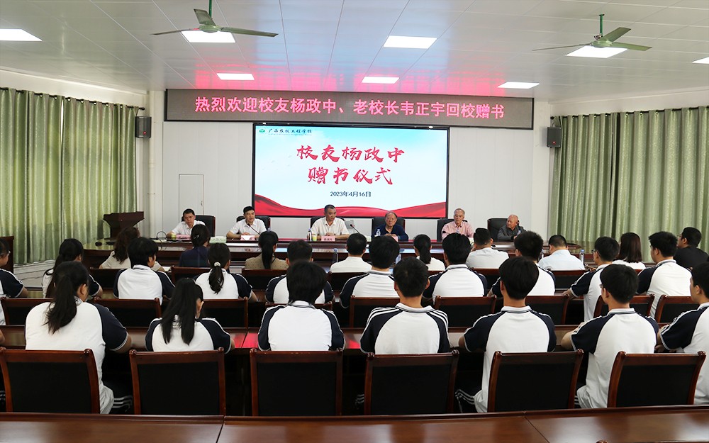 4月16日上午,我校1962届校友杨政中在老校长韦正宇、校友袁燕文的陪同下回校赠书。