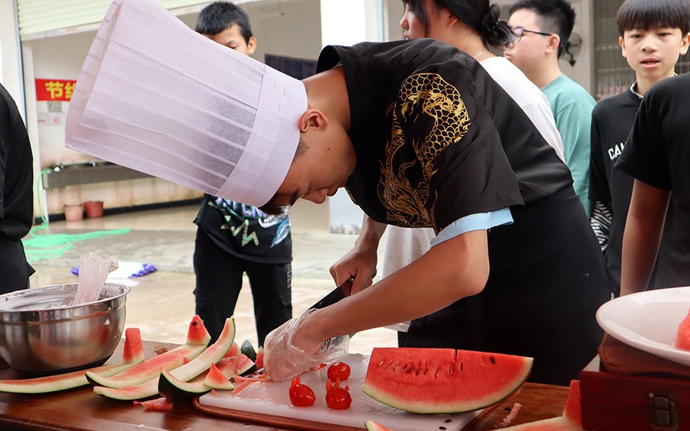 我校学生现场制作水果拼盘