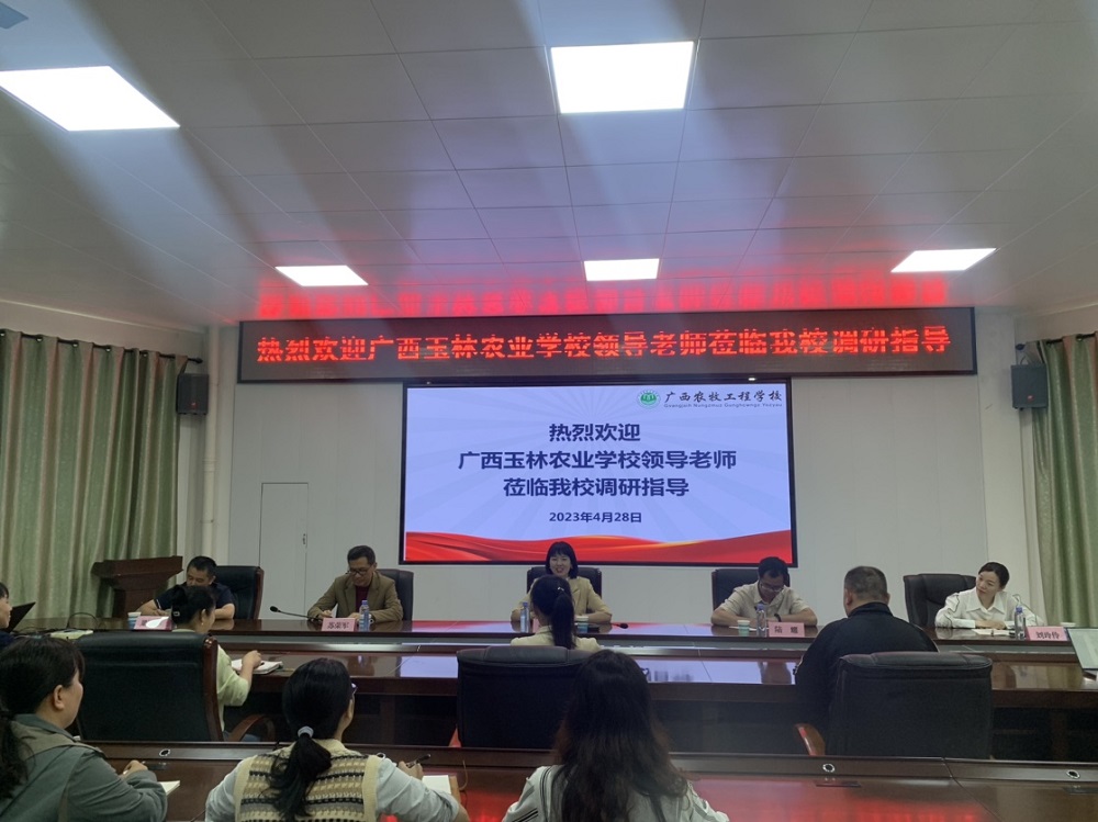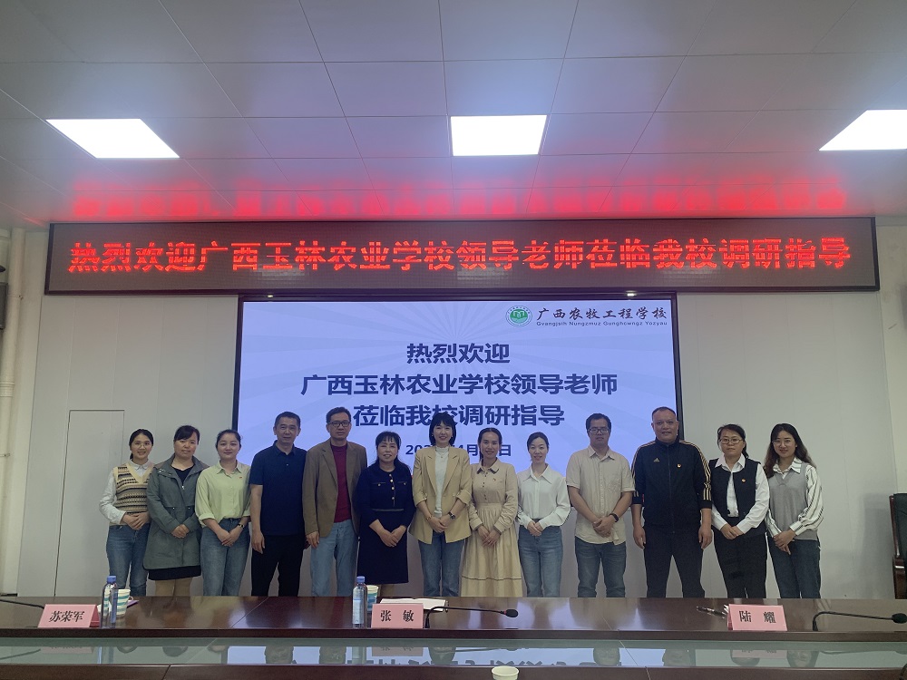 4月28日上午,广西玉林农业学校农林牧渔科科长张敏等一行5人到我校调研座谈,学校办公室、教务科、招就办、团委等相关部门负责人热情接待了玉林农校一行。