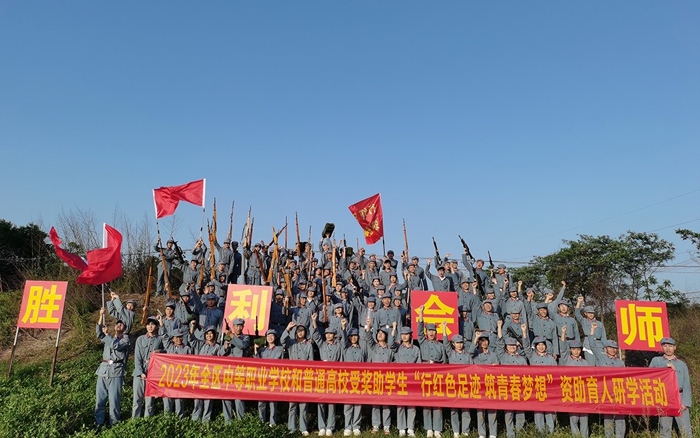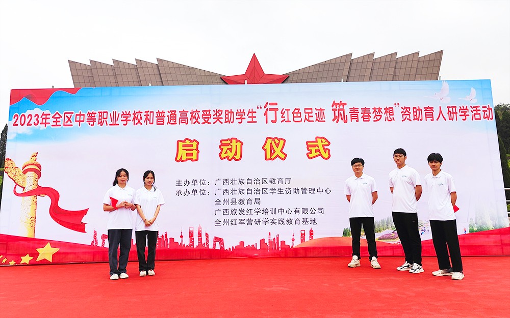 4月24日至27日,由广西壮族自治区教育厅主办的全区中职中等职业学校和普通高校受奖助学生“行红色足迹,筑青春梦想”资助研学活动在桂林全州隆重举行。我校由学生科资助办朱世斌老师带领四位获得“2021-2022年度中等职业教育国家奖学金”的同学前往桂林全州参加研学。