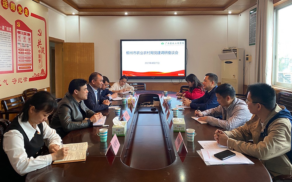 4月27日下午,柳州市农业农村局党组书记韦松凌、副局长黄里明等一行4人到我校开展党建调研座谈。学校班子成员参加座谈。