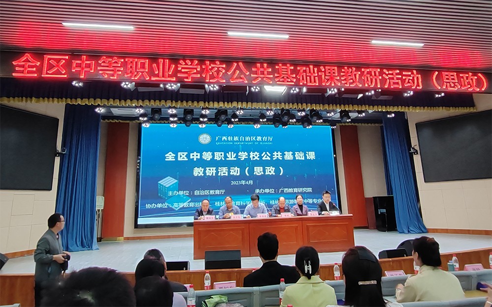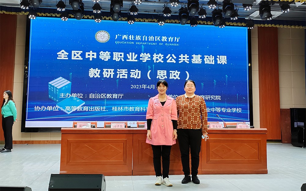 近日,我校思政课教师宾娟容、韦蓉萍参加了区教育厅在桂林市旅游职业中等专业学校开展的全区中等职业学校公共基础课思政教研活动,活动结合专家课例点评,主要学习研讨基于标准的思政课教学设计与实施,如何在课堂中落实课标要求等内容。