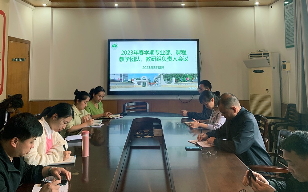5月8日下午,我校在办公楼三楼会议室召开2023年春学期专业部、课程教学团队、综合升学教研组负责人会议,学校校长蒋漓生、副校长马翠芳及相关老师参加会议。