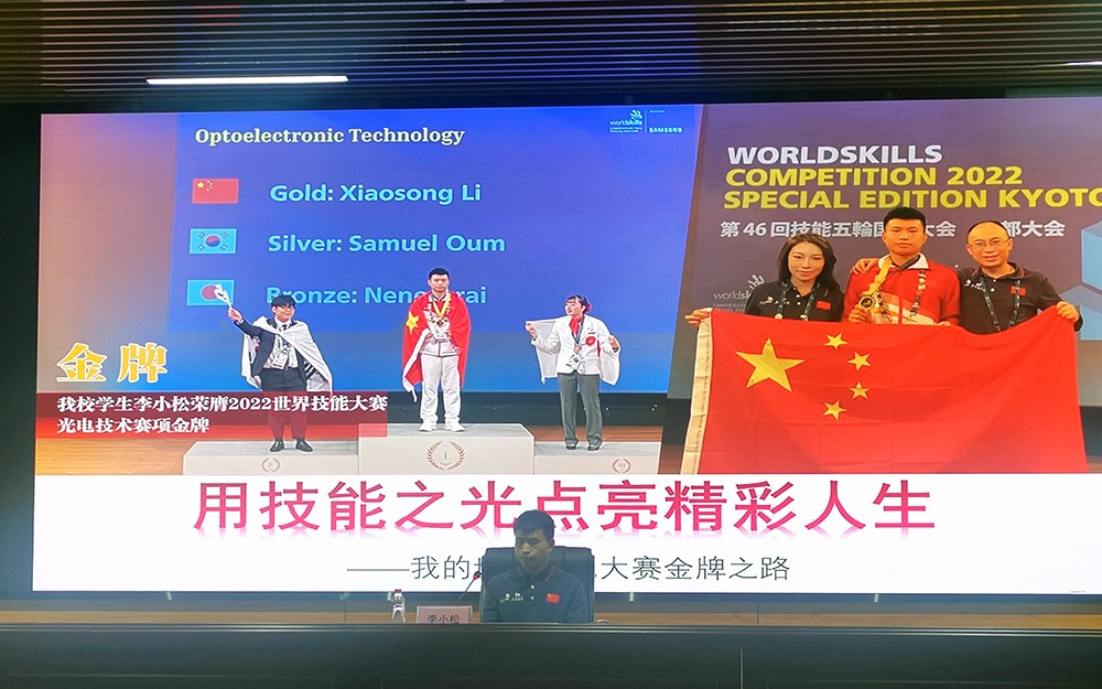 会上,世界技能大赛光电技术项目专家、世赛冠军指导教师周渝曦教授分别介绍了世界技能大赛光电技术、电气装置等赛项的最新要求和特点、以及国内区赛、国赛的备赛、办赛等成功经验分享。第46届世界技能大赛光电技术赛项世界冠军李小松同学(重庆电子工程职业学院)分享了他的成长经历和参赛经验等情况,他为国争光的事迹,为职业院校学生发展成为技能型人才,培养工匠精神树立了良好的榜样作用。