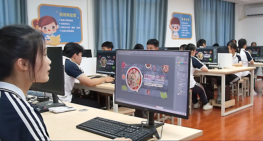 学校物流电商教学团队负责人周勤老师为我们生动的展示了一堂《网络广告设计与制作》课。课上,周老师采用任务驱动、分组教学等教学方法,发布学习任务,学生以小组为单位分工互助设计制作广告,完成后展示讲解各组的作品,小组间进行评分,最后由周老师进行点评与补充。这样的教学方式让每个学生都能各展所长、团结互助,大大提高了学生学习的积极性,也为他们将来走向社会能更快找准自身定位、适应社会环境打下基础。同时,周老师非常巧妙的将职业道德规范、珍爱生命、劳动教育等思政元素融入教学过程中,让学生在学习知识的同时也提高了思政水平。