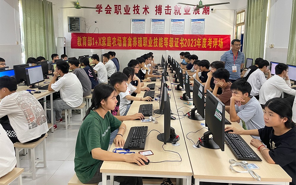 为贯彻国家职业教育改革方针,加快推进1+X证书制度试点建设,提高中职学生的职业技能水平,我校畜牧兽医专业于5月30日开展2023年“1+X”家庭农场畜禽养殖职业技能证书考试工作。