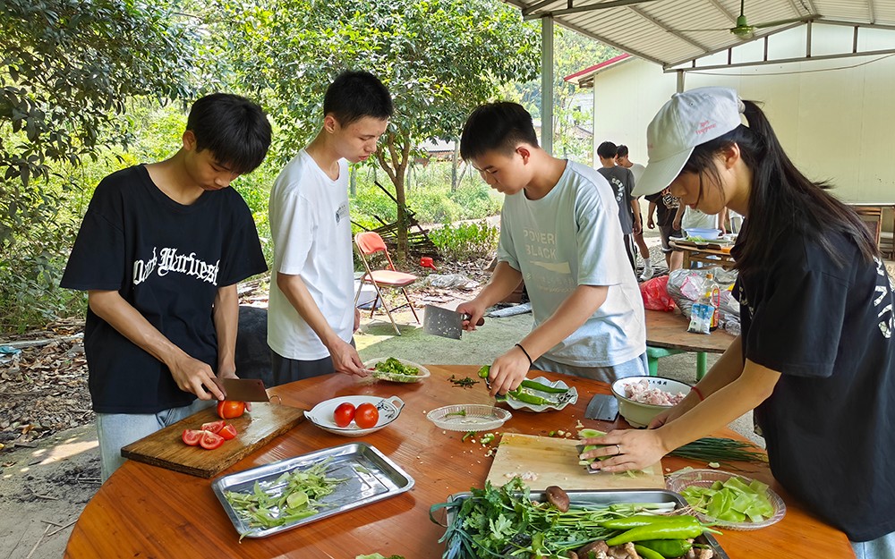 此次拓展活动包含热身破冰、团队建设、战地野炊、村庄巷战、勇攀高峰、分享总结等六个环节。通过活动改善学生对自己、对他人的认知,激发了他们的个人潜能,增强了他们的团队合作意识。