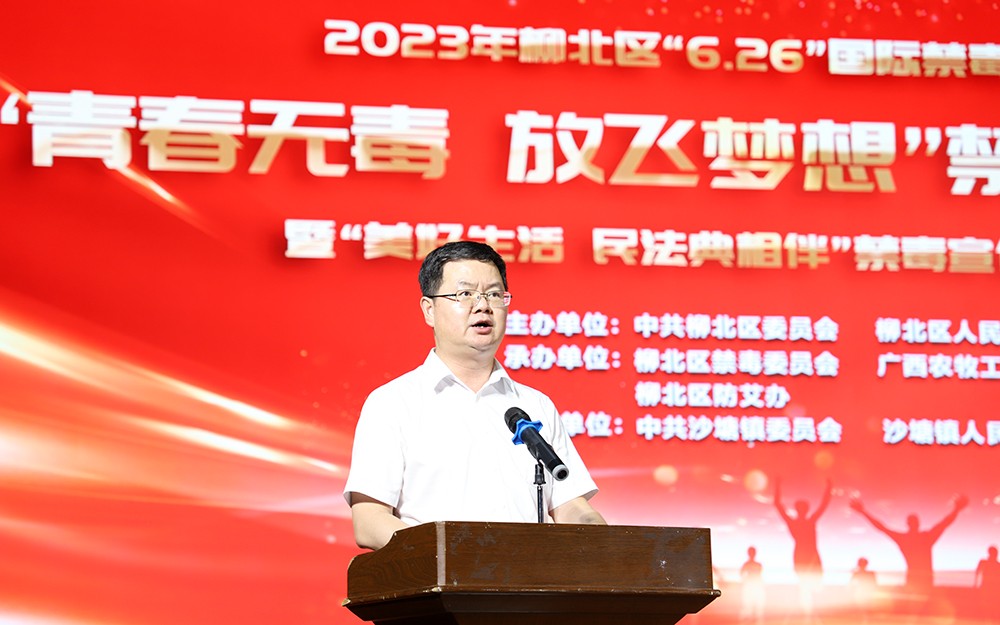 活动伊始,马翠芳副校长发表了热情洋溢的讲话,代表学校对出席本次活动的柳北区各位领导表示诚挚的欢迎!对为本次活动辛勤付出的老师和同学们表示衷心的感谢!她指出一年一次的幼儿保育专业汇报演出,是结合幼保专业特色,为提高学生综合能力而精心搭建的一个展示自我、发展自我的舞台,也是对教学成果的检阅。今年的汇报演出在柳北区的大力支持下,同“禁毒防艾”主题教育充分结合,全面促进学校精神文明建设,构建和谐校园,展现我校良好的精神风貌和文明风气。接着,刘俊书记致辞,指出柳北区委、区政府坚持深入贯彻落实习近平总书记重要指示精神,始终把禁毒工作摆在重要位置,作为一件“功在当代、利在千秋”的大事抓紧抓好并呼吁广大青少年牢固树立“珍爱生命、远离毒品”的观念,珍惜韶华、不负青春,一起为创建无毒校园、无毒社会贡献力量。