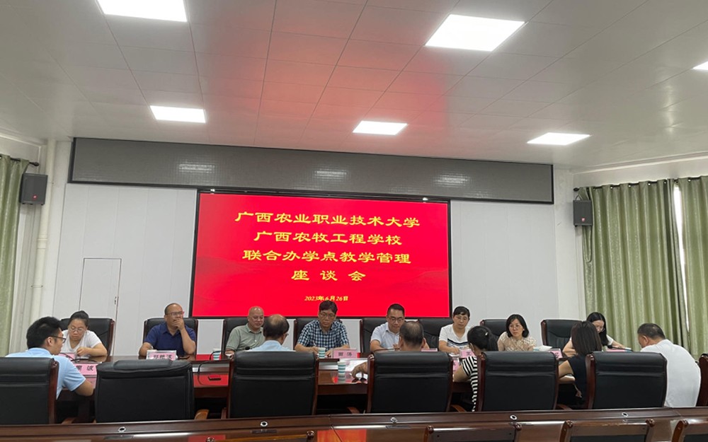 6月26日上午,广西农业职业技术大学校长助理田涛、教务处副处长赵俊杰等一行8人莅临我校就联合办学相关工作进行指导交流。我校党委书记、校长蒋漓生以及畜牧兽医专业部、教务科、学生科、公共基础部、招就办等相关部门负责人参加座谈交流。