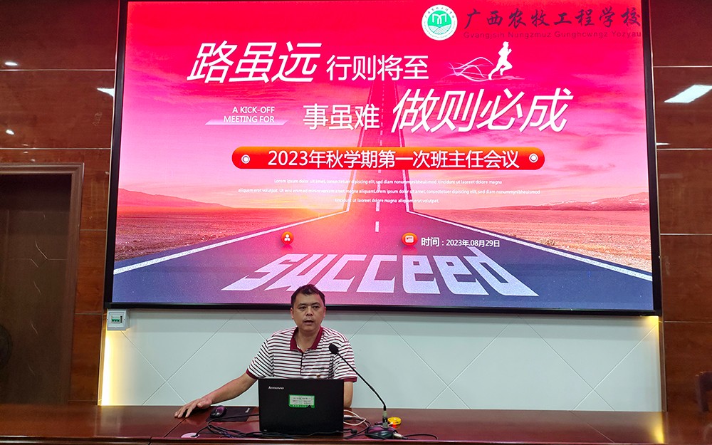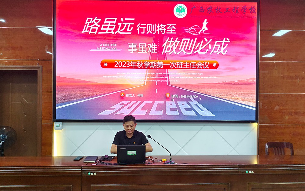为了推进秋学期班主任工作的开展,8月29日下午,我校在阶梯教室召开了2023年秋学期第一次班主任会议,会议由学生科副科长何程主持。