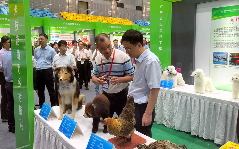 作为国家中等职业教育改革发展示范学校、国家重点中等职业学校、广西优质中职学校和专业立项建设单位、自治区五星级学校,我校在本次展会上向社会大众展示部分学生实训作品,包括宠物造型设计现场操作、动物标本展示、非遗传承美食牛腊巴等。吸引了大量巡展领导、参展嘉宾和外宾驻足展区。